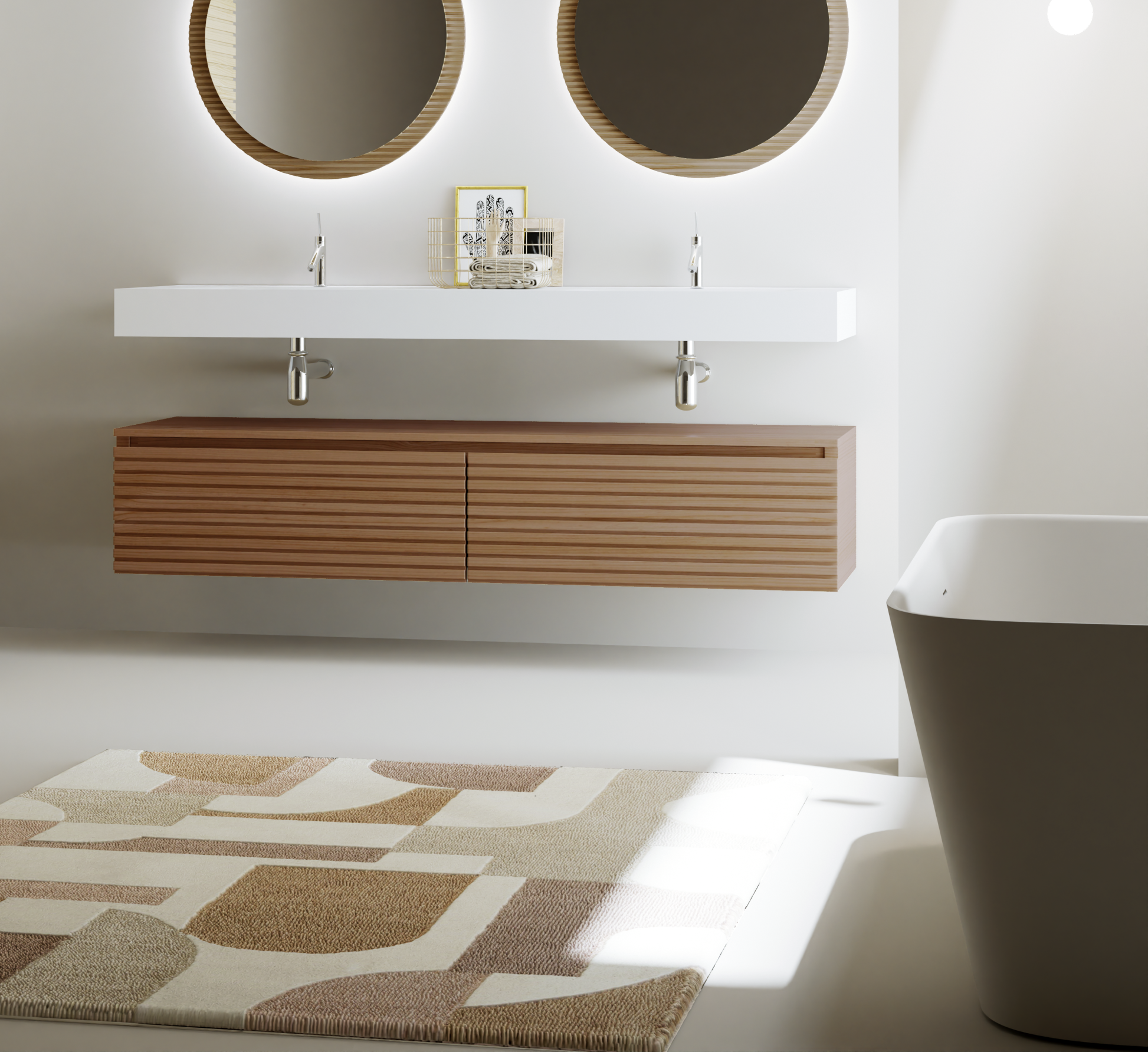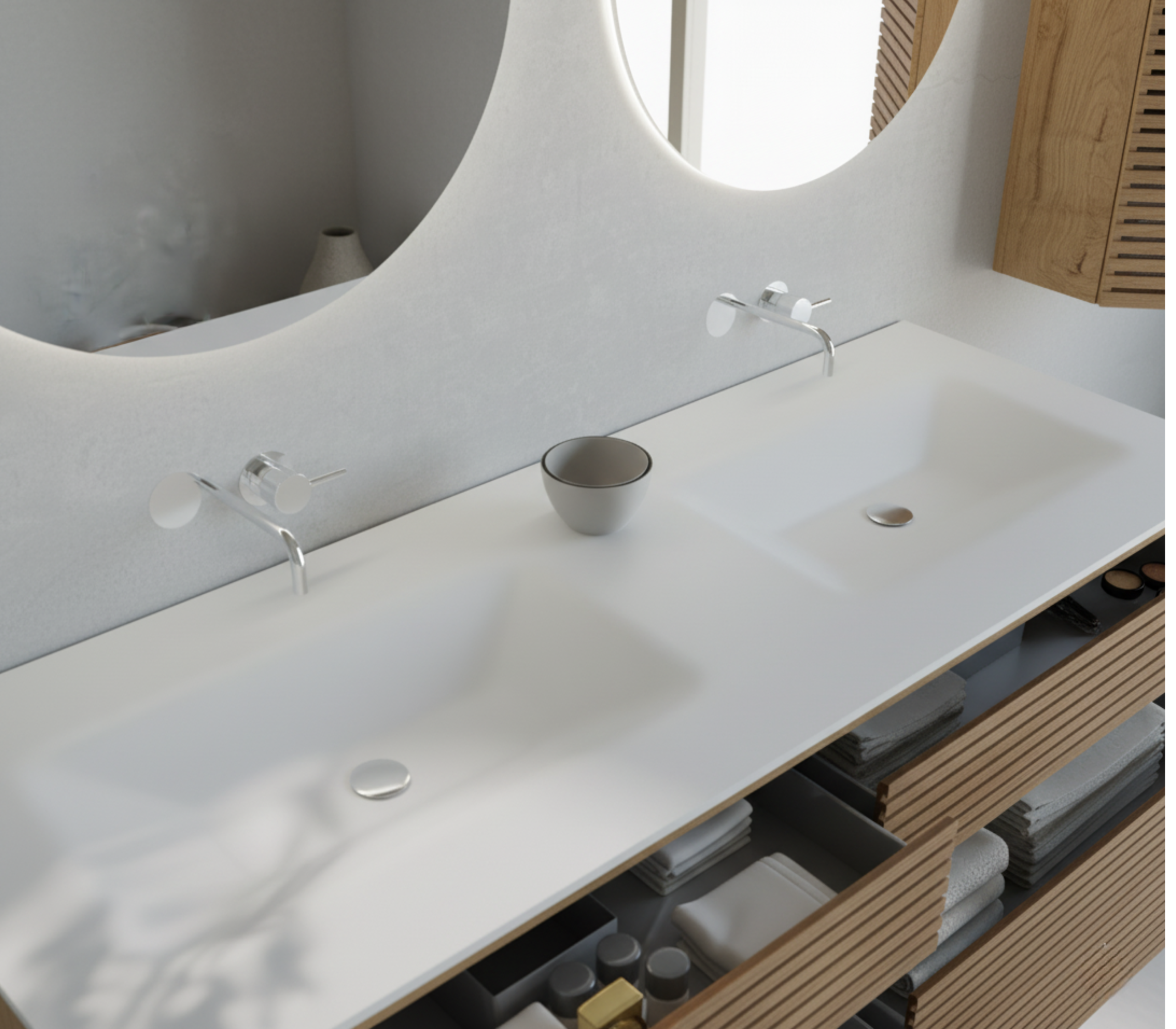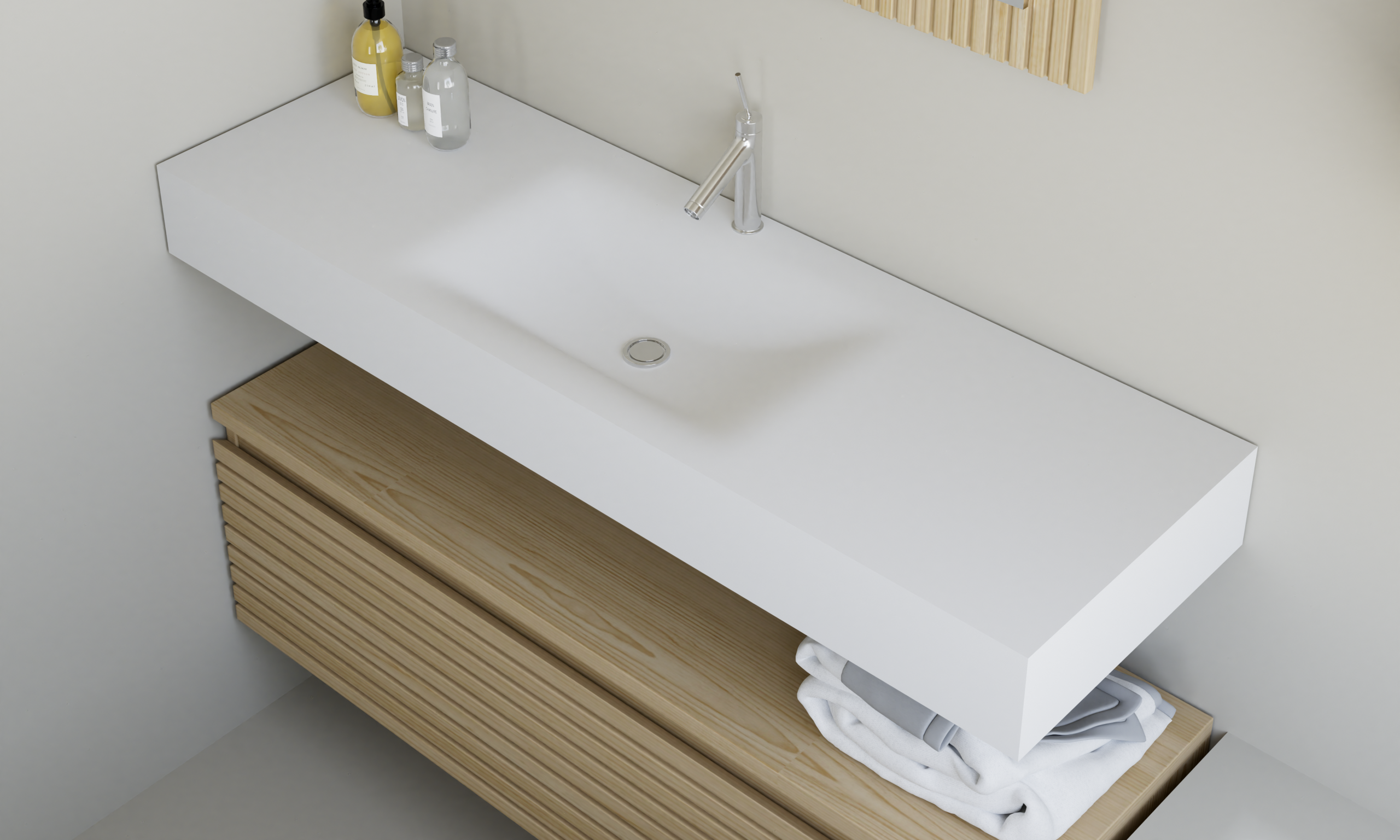 Lavabo Solid Surface 1 seno desplazado con faldon